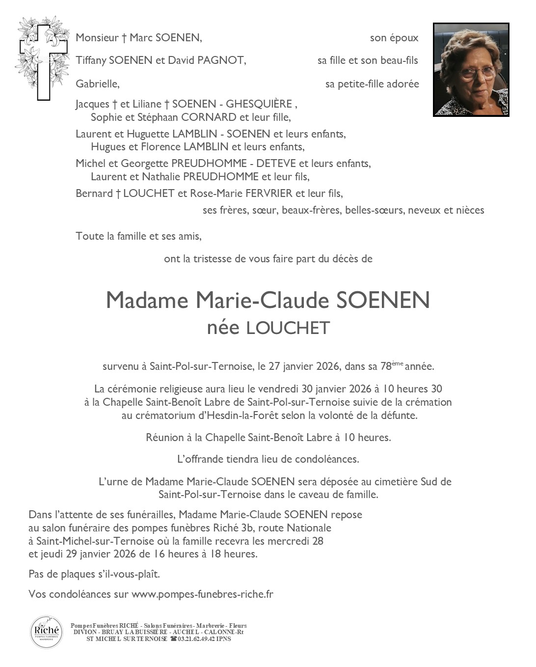 Madame Marie-Claude SOENEN née LOUCHET