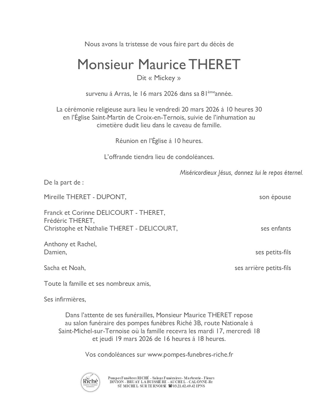 Décédé le 16 mars 2026 à Arras