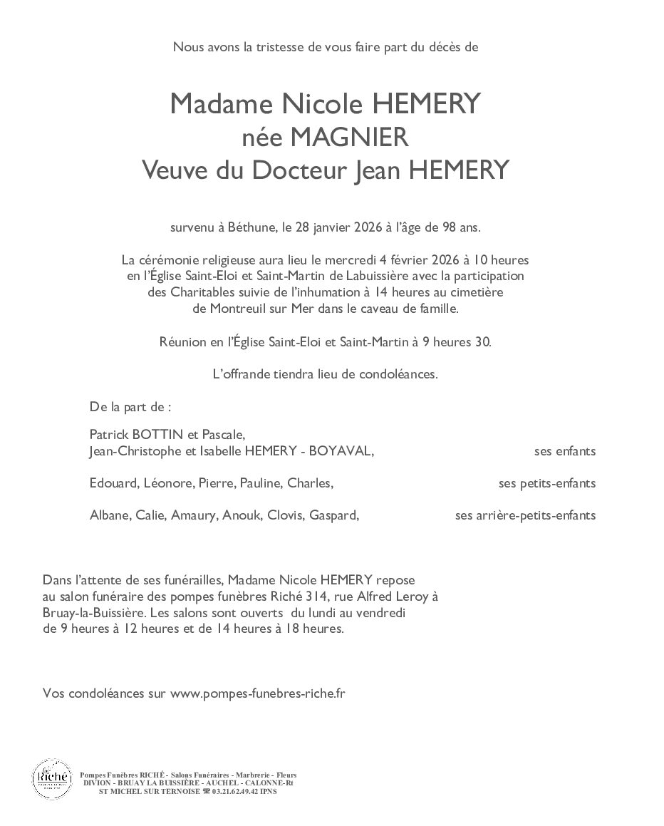 Madame Nicole HEMERY née MAGNIER